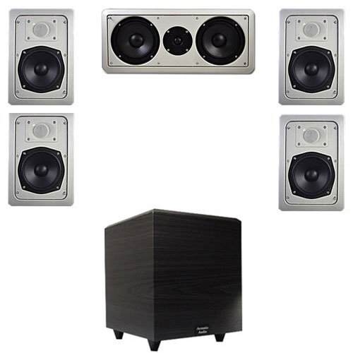 This Acoustic Audio 5.1 channel multi-speaker system features four, 5.25" in-wall/ceiling speakers, a 6.5" center channel and one black 12" powered home audio subwoofer. These IW191 200 watt (100W RMS) in-wall speakers mount flush in a wall or ceiling for nearly invisible installation and have paintIW191 4-Piece 5.25 In-Wall Speaker System w/Center Channel & 12 Subwoofer Do not Miss!! This Acoustic Audio 5.1 channel multi-speaker system features four, 5.25" in-wall/ceiling speakers, a 6.5" center channel and one black 12" powered home audio subwoofer. These IW191 200 watt (100W RMS) in-wall speakers mount flush in a wall or ceiling for nearly invisible installation and have paint... IW191 4-Piece 5.25 In-Wall Speaker System w/Center Channel & 12 Subwoofer